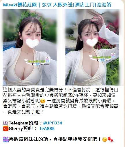 予約方法:アプリ:Gleezy → TeA88KTelegram:@jptd847utpp または @chu8699お気に入りの子を選んでください!