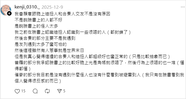 沉偵多次於其公開版面(Threads)發布針對本人其內容並非針對具體事實的討論,而是充滿歧視、羞辱及惡意揣測之言論、公開羞辱。
